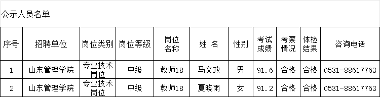 根据《2025年度省属事业单位公开招聘工作实施方案的通知》(鲁人社发〔2024〕15号)等相关规定,按照岗位招聘计划,山东管理学院组织完成了公开招聘考试、考察、体检等工作,现对本次拟聘用人员进行公示。公示期为5个工作日,自2025年10月14日至2025年10月20日(不含节假日)。公示期间,如对公示人选有异议,请及时向省事业单位公开招聘主管机关反映。