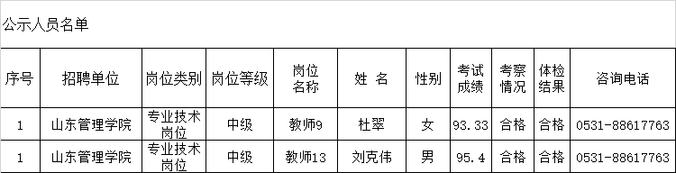 根据《2025年度省属事业单位公开招聘工作实施方案的通知》(鲁人社发〔2024〕15号)等相关规定,按照岗位招聘计划,山东管理学院组织完成了公开招聘考试、考察、体检等工作,现对本次拟聘用人员进行公示。公示期为5个工作日,自2026年1月4日至2026年1月8日(不含节假日)。公示期间,如对公示人选有异议,请及时向省事业单位公开招聘主管机关反映。